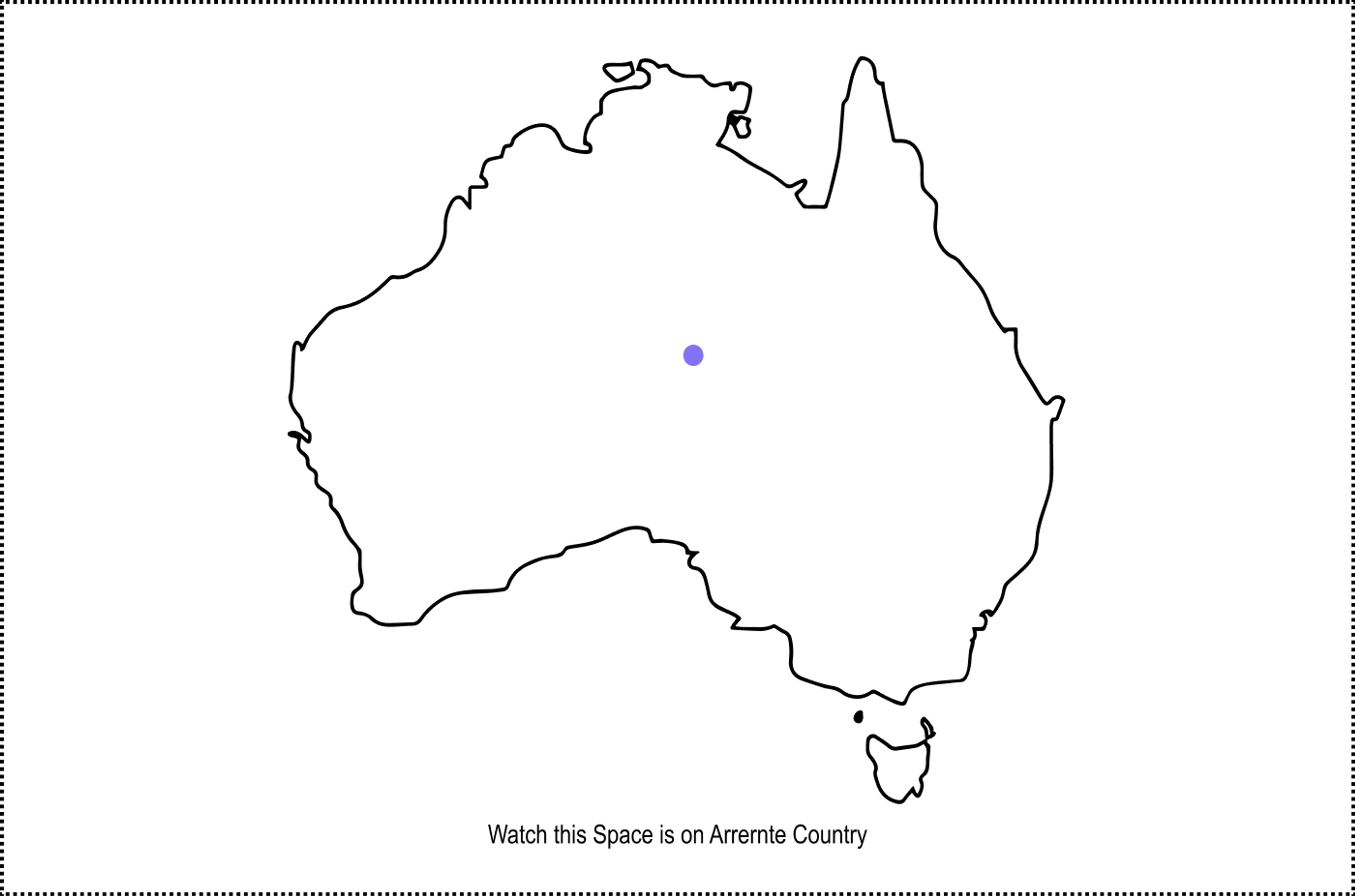 Watch This Space (WTS) is located in Mparntwe/Alice Springs on Arrernte Country. We pay respect to its traditional custodians, the Arrernte people, who continue to nurture and care for this apmere/country/home. WTS recognises that colonisation is still happening, now and across the country, and acknowledges that sovereignty has never been ceded.