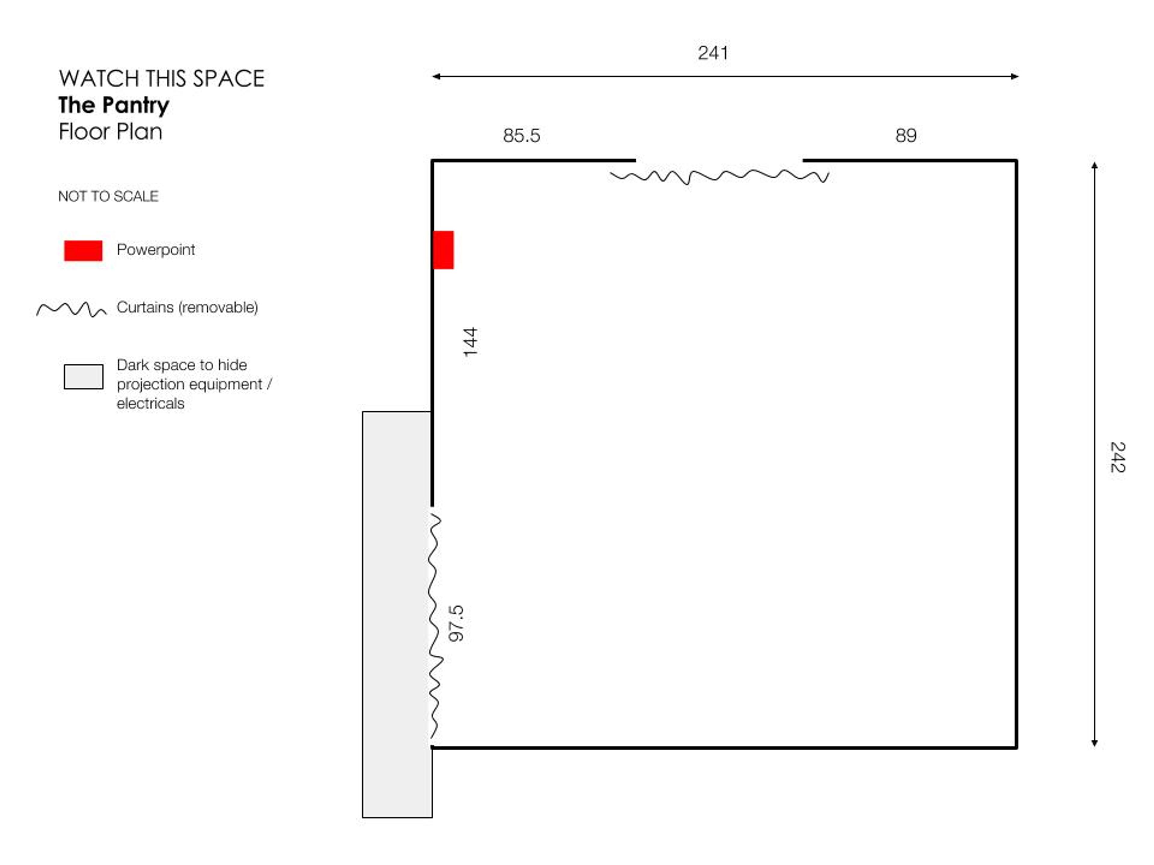 The Pantry is a small exhibition room with its entrance accessed through our kitchen area (hence its name). Due to it's unique scale, The Pantry calls for experimental exhibitions to inhabit its tiny, curious space. Additionally, the space can be used to present unique, intimate performances, for intensive residencies in the tiny space, or as a dark room for presenting multi-media works. The space is flexible and we are open to hearing your ideas.