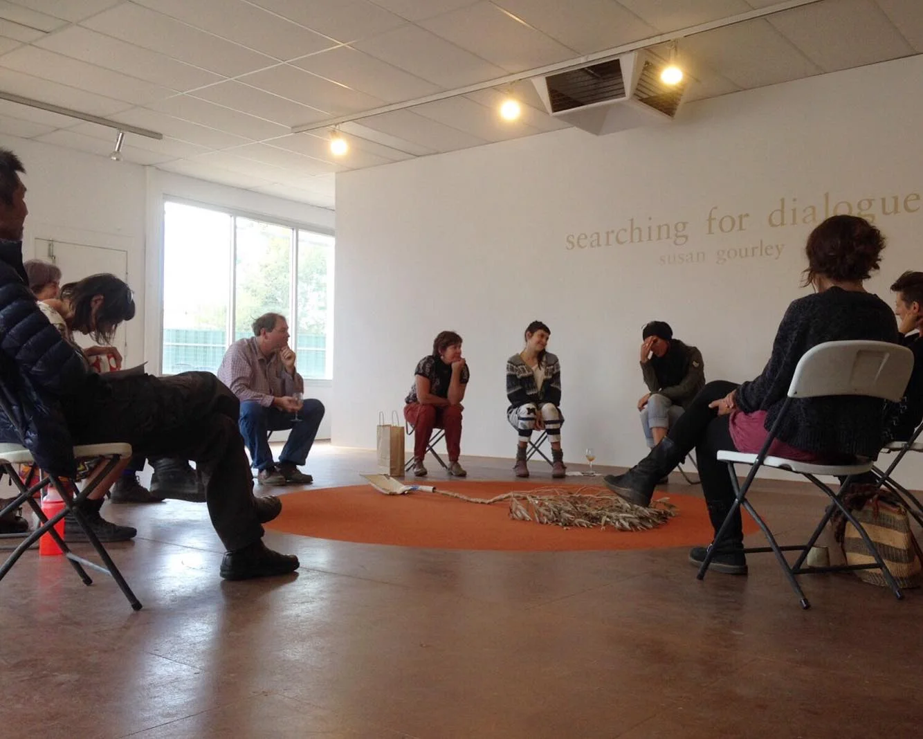 TOP: The making of Apmere angkentye-kenhe (A Place for Language), meeting inside the shed 2017.