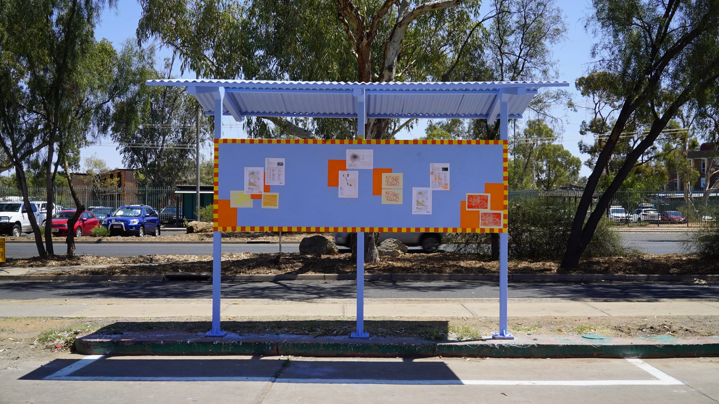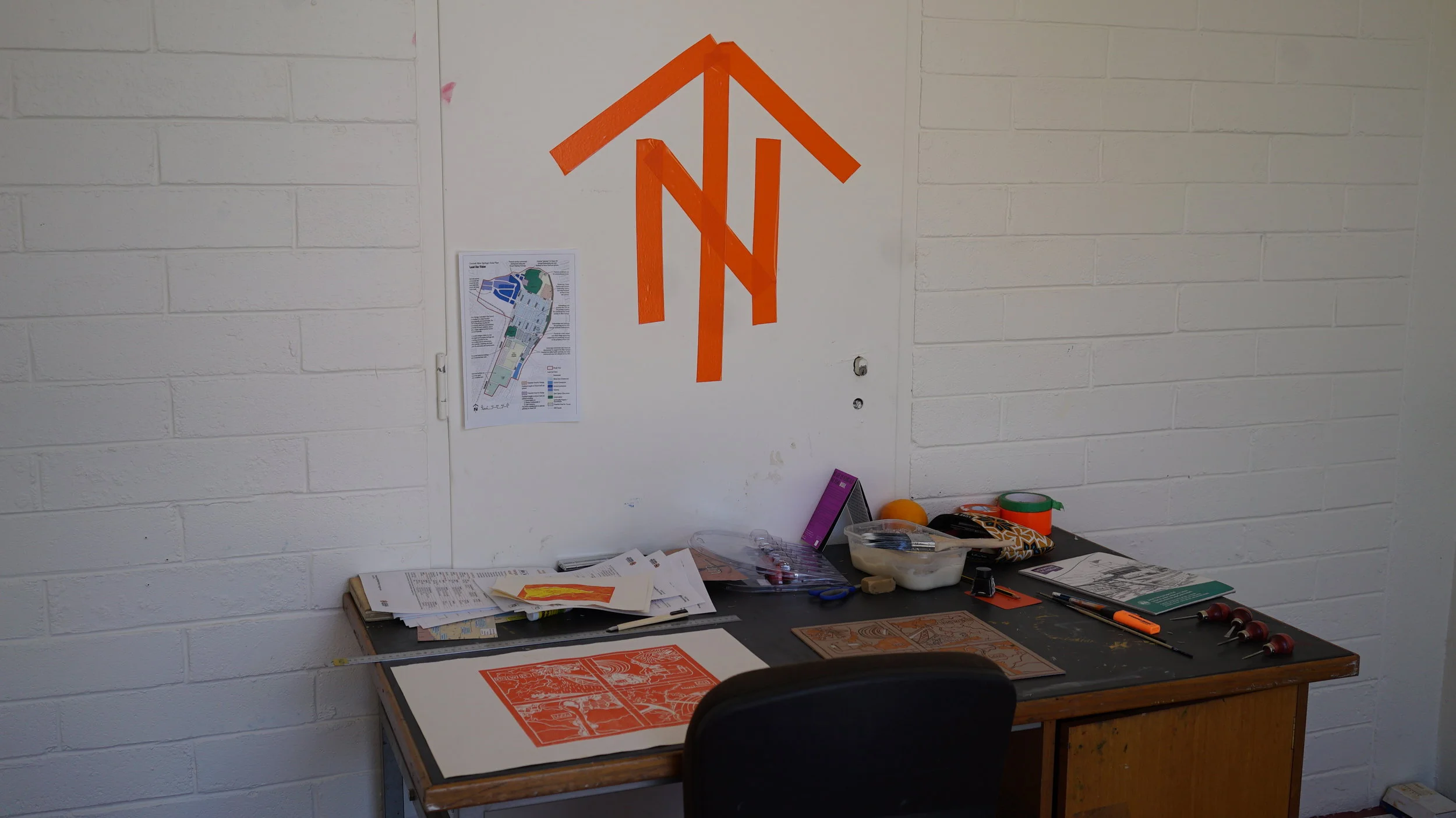 Phoebe Beard’s Travelling Artist Residency open studio and work on WTS’s The Writing On The Wall public noticeboard, 2018.