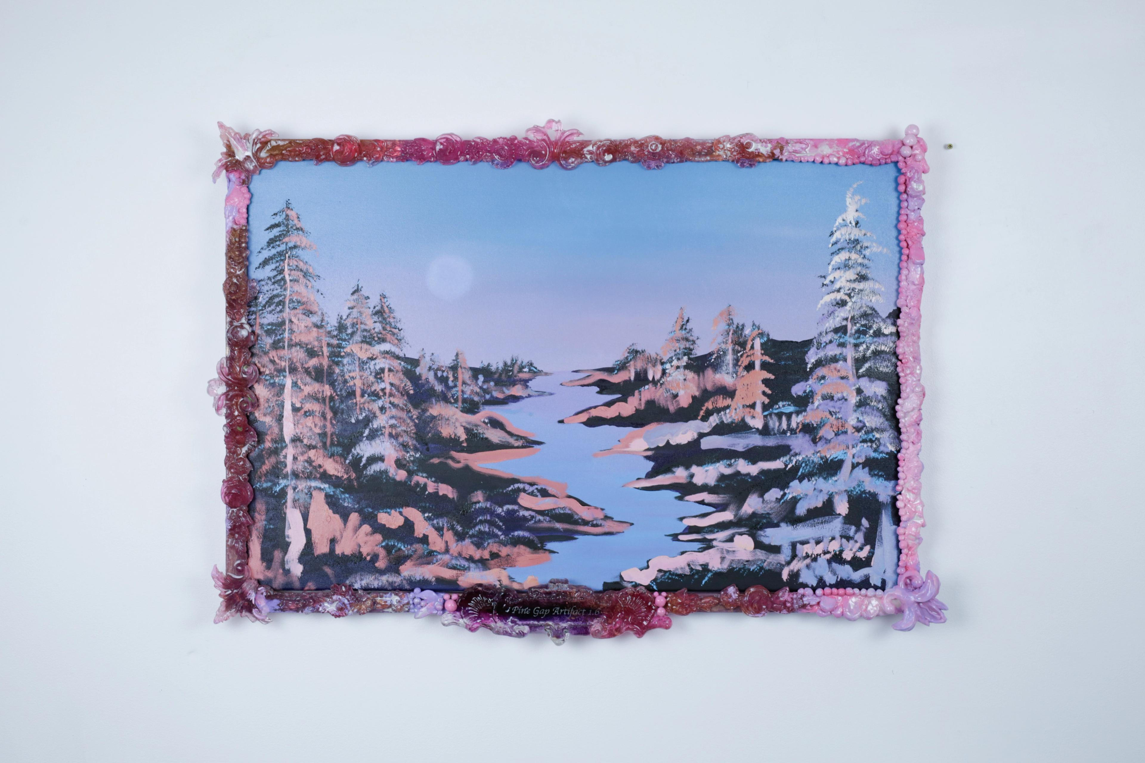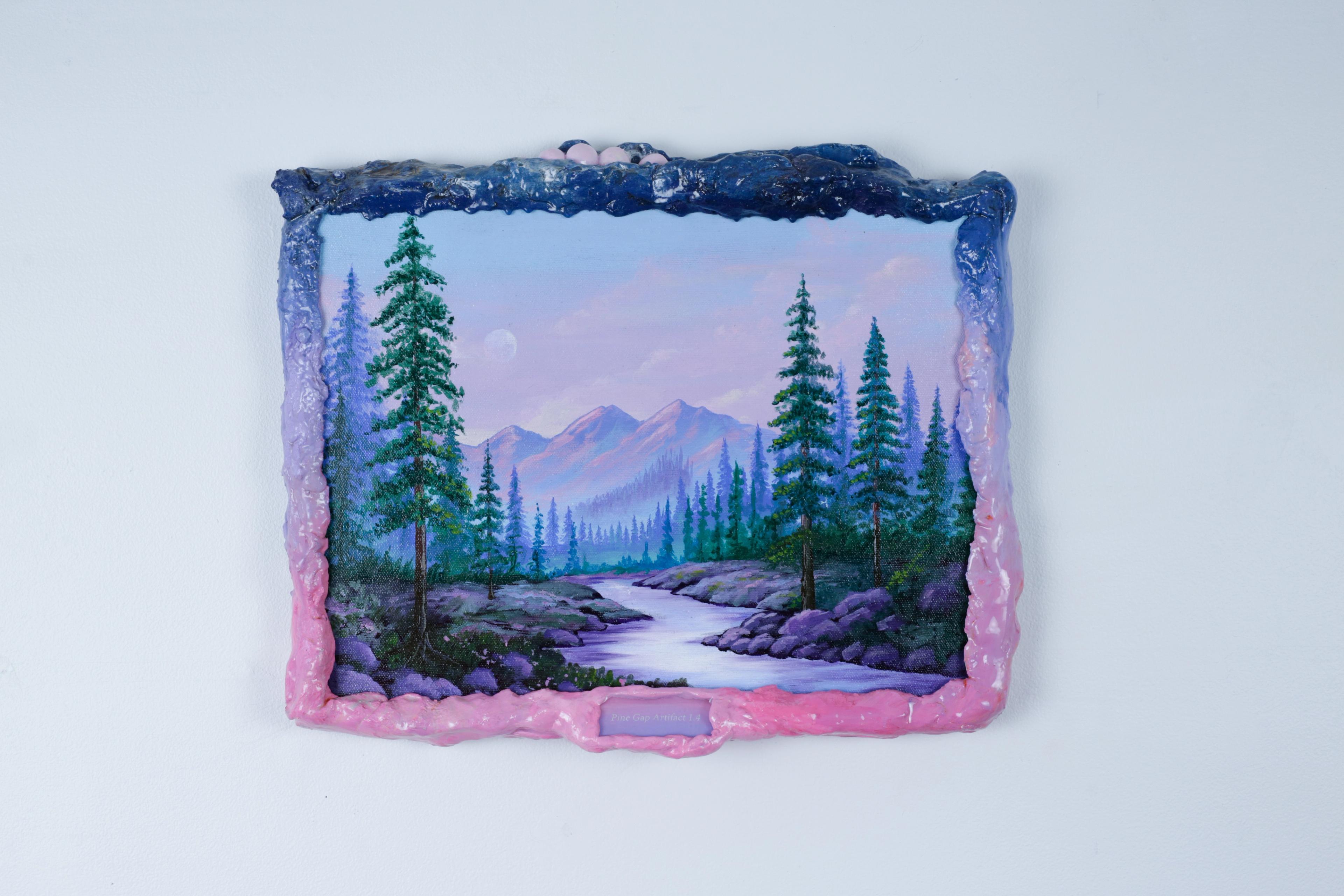 Project Pine Gap is a dreamstate reflection of the artworks displayed inside the joint-defence facility Pine Gap. Combining descriptions of artworks seen by people who have entered Pine Gap with AI generated imagery and painted works, Georgie Mattingley recreates an ethereal interpretation that is distorted by memory, secrecy, power and control. What started as covert research has now expanded into a public campaign, showcasing replicas of what may be the most private artworks in the world; the Pine Gap collection.