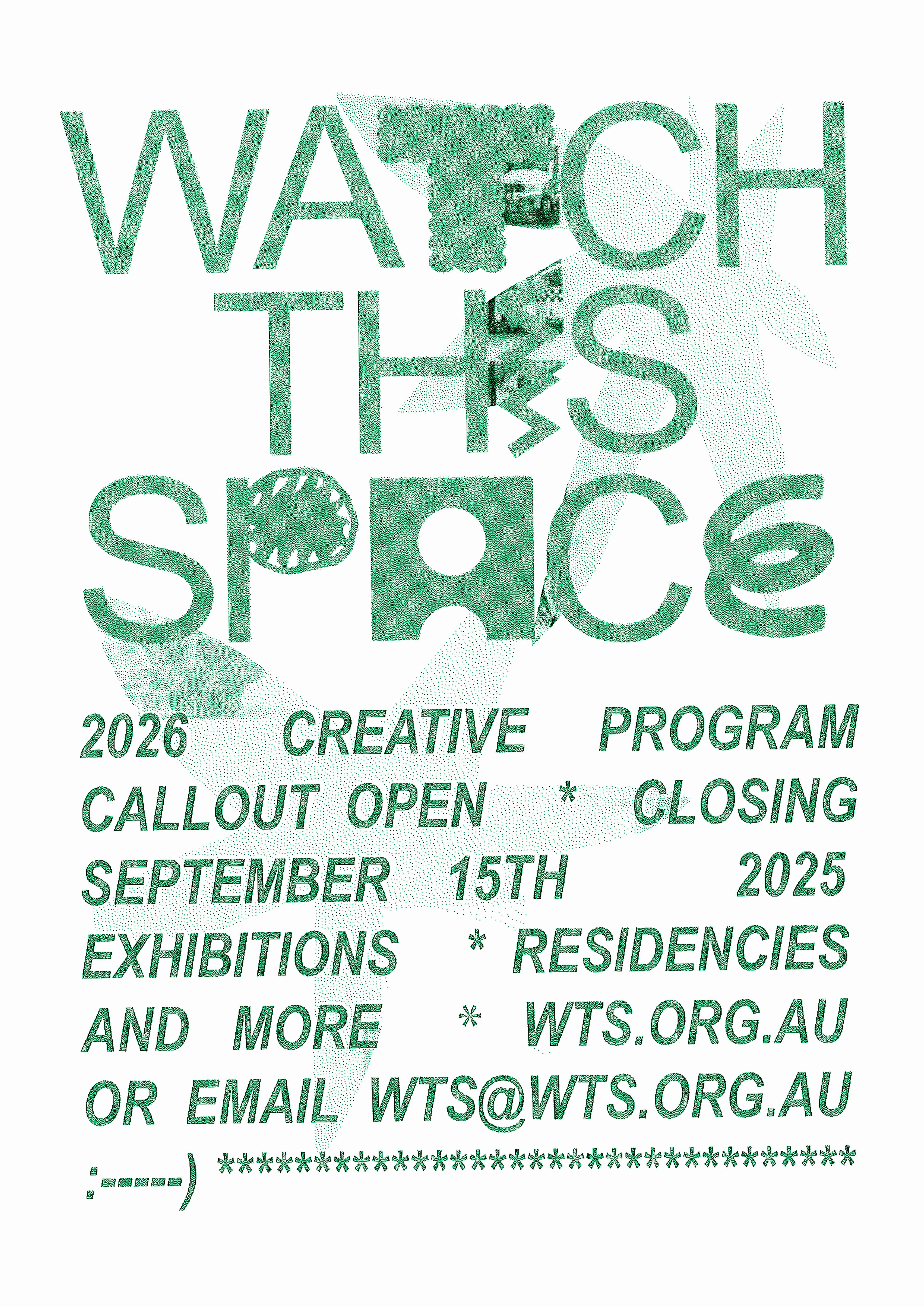 We aim to cultivate a horizontal and inclusive community space for artists where experimentation, questioning and collective responsibility are made possible, highlighting opportunities for professional and unprofessional development. We orient ourselves to our position in the centre of so-called Australia, which gives Watch This Space a unique proximity to artists across the continent and beyond.